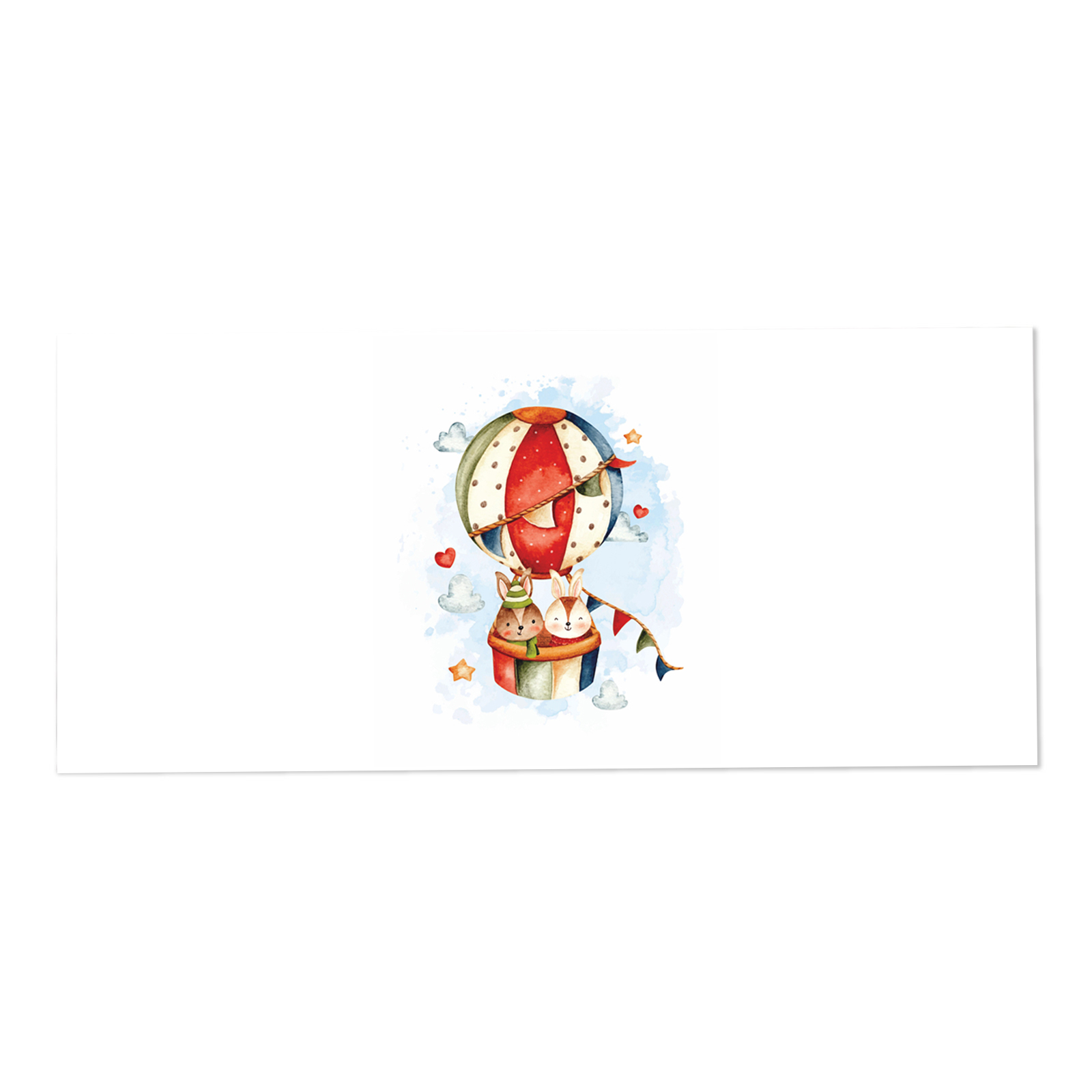 🎨 Design jucaus si colorat – balon de aer cald si doi iepurasi adorabili